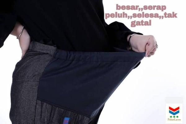Mempunyai poket di kanan dan kiri seluar. Poket besar dan dalam menggunakan fabrik utama memberi keselesaan yang maksima.